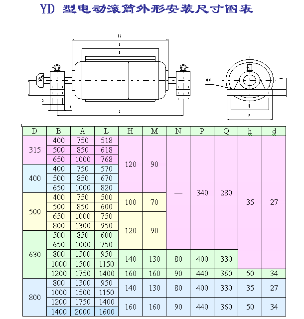 YD油冷式電動(dòng)滾筒參數(shù):